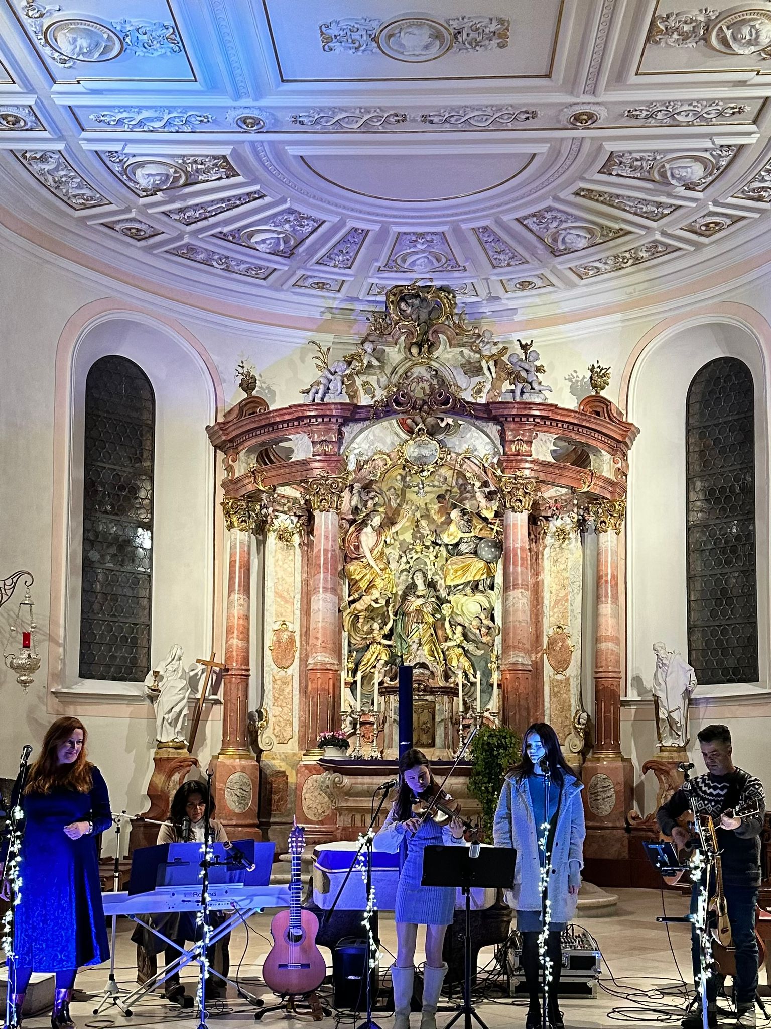 Eng verbunden sind wir seit Jahrzehnten mit dem Spaichinger Freundeskreis um Frank Merkt und Simon Wissmann. Seit vielen Jahren organisieren Sie diverse Veranstaltungen, bei denen regelmäßig hohe Spendenbeträge eingenommen werden. Hierzu zählt auch das Benefiz-Weihnachtskonzert mit Dos Mundos. Das Konzert zugunsten der Nachsorgeklinik in Tannheim fand erneut in der katholischen Kirche auf dem Dreifaltigkeitsberg statt. Eine einmalige Kulisse, besonders in der Weihnachtszeit.