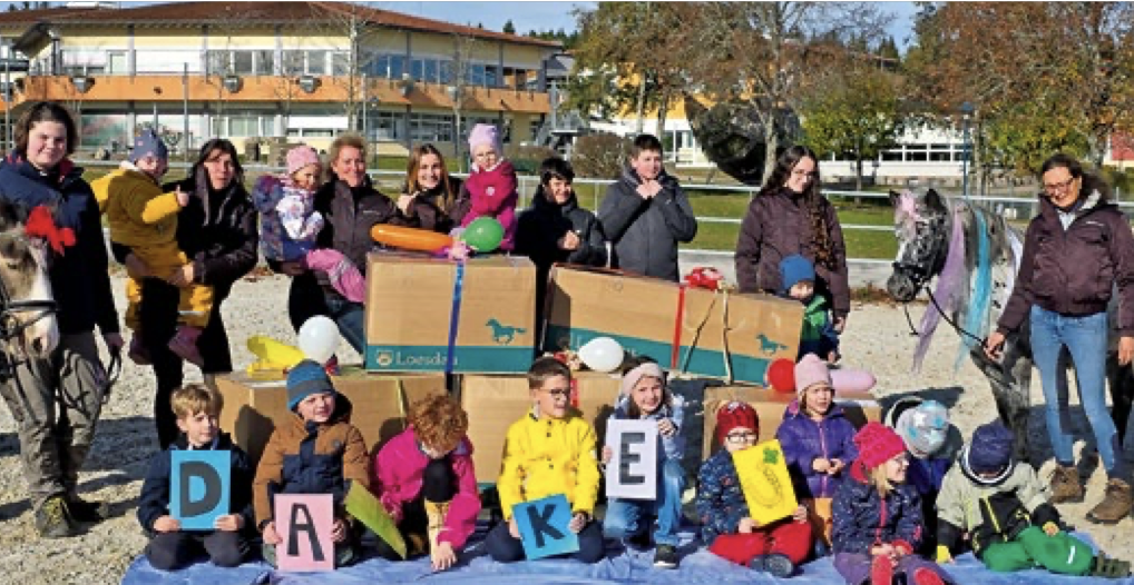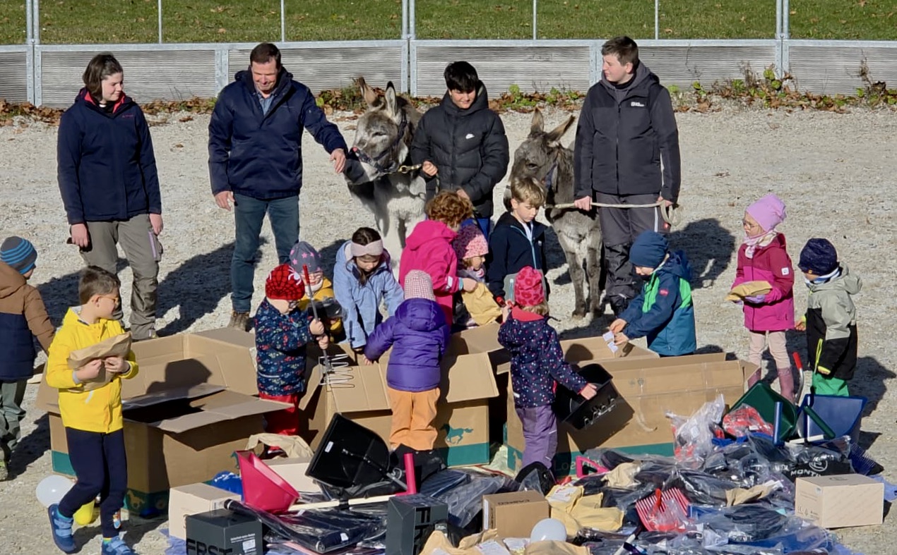 Das Pferdesporthaus Loesdau hat der Reittherapie eine besonders große Freude bereitet: Sie kamen mit mehreren riesigen Paketen – klar, dass die Spannung der Anwesenden fast spürbar war. Beim Auspacken steigerte sich die Begeisterung von Minute zu Minute. Neben warmen Funktionsjacken für das gesamte Therapieteam kamen Reithelme in verschiedenen Größen und Farben, Trensen, Halfter, Rückprojektoren, Fliegenohren, Schabracken und viele weitere Reitsportartikel aus den Geschenkpaketen zum Vorschein. Arnold Seng, Leiter der Reittherapie: „Diese überaus großzügige Spende bedeutet uns unglaublich viel und ist für unsere Reittherapie eine sehr große Unterstützung“.