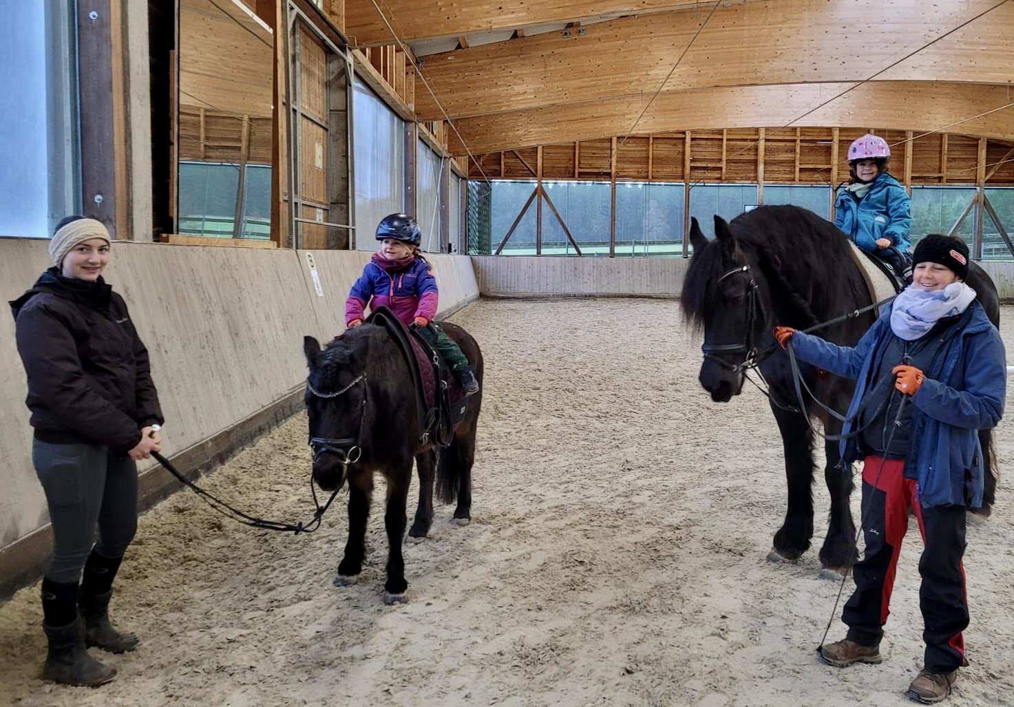Lange war die Tannheimer Kinderweihnacht angekündigt, deshalb füllte sich am 2. Advent das Versorgungsgebäude der Nachsorgeklinik auch sehr schnell. Weit über die Dorfgrenzen hinaus ist die Kinderweihnacht inzwischen bekannt und so wurden Parkplätze zur Mangelware. Es gab ja auch wirklich viel zu sehen, zu hören und zu schmecken. Was für ein Erfolg und alle waren wieder mit vollem Einsatz und viel Spaß dabei. Erneut konnte man sich auch wieder am Stand des Fördervereins ausgiebig informieren, spenden oder auch Mitglied werden. Danke an unser Team, angeführt von unserer 2. Vorsitzenden Dr. Petra Brenneisen-Kubon, gemeinsam mit dem Stiftungsteam Lukas Weiler, Irina Schilke und ihrer Leiterin Stefanie Rothmund. Was „unter Dach“ auf dem Weihnachtsmarkt mit Erfolg klappte, setzte sich in der Reithalle fort. Alle neun Pferde waren im Einsatz und dennoch bildeten sich Warteschlangen. Aber die Wartezeit wurde vollständig belohnt, denn jeder kam an die Reihe.