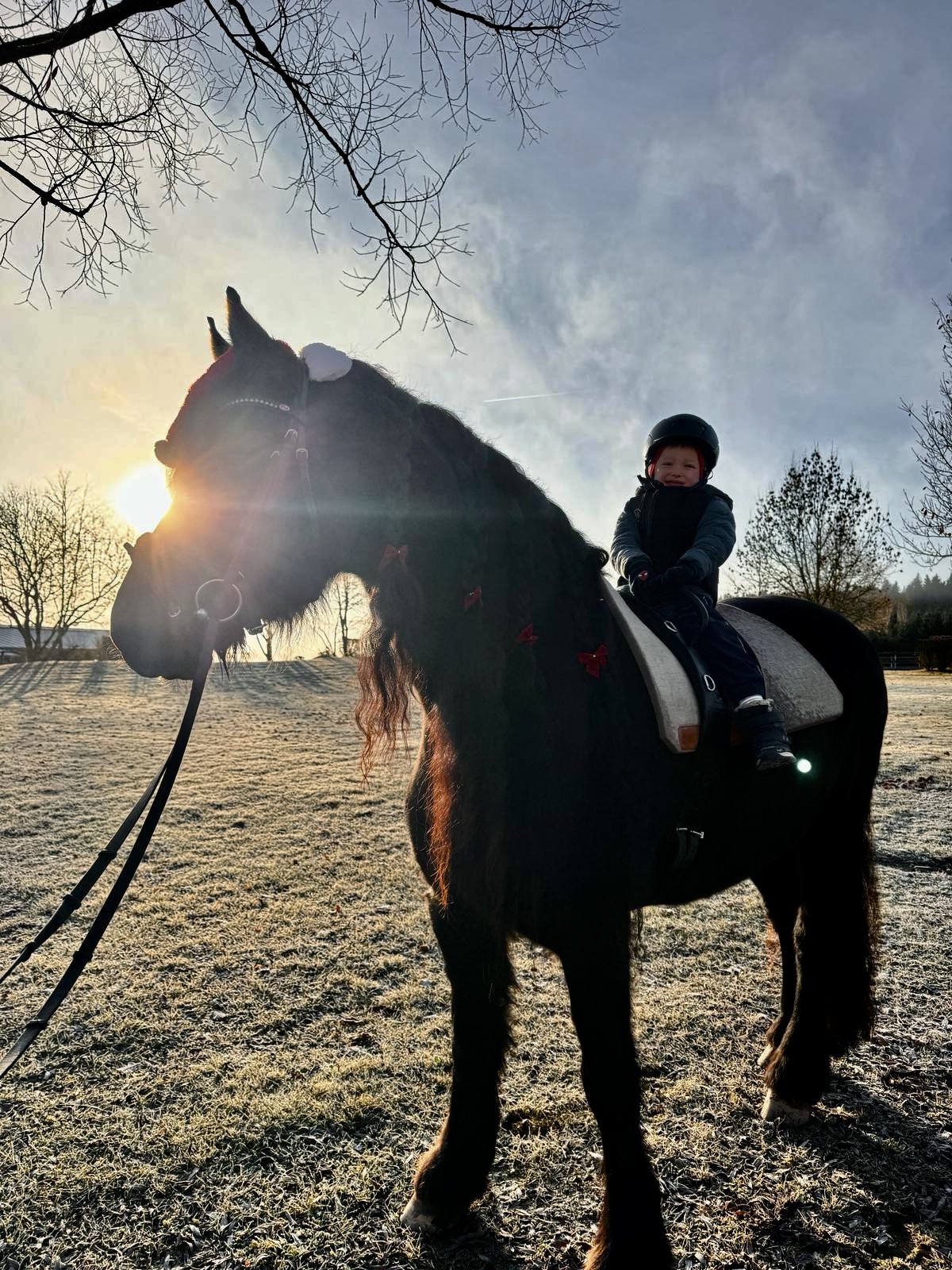 Der Sonnenuntergang begleitete unsere beiden Reiter und lieferten bewundernswerte Bilder. Während des Ausrittes noch an der Leine geführt, durfte Theo in der Reithalle tatsächlich Leon alleine führen. So klein und schon so ein mutiger Mann! Voraussichtlich hat die Reittherapie den Pferdevirus in Theo erweckt, der sich sicher auf sein späteres Leben auswirken wird.😘