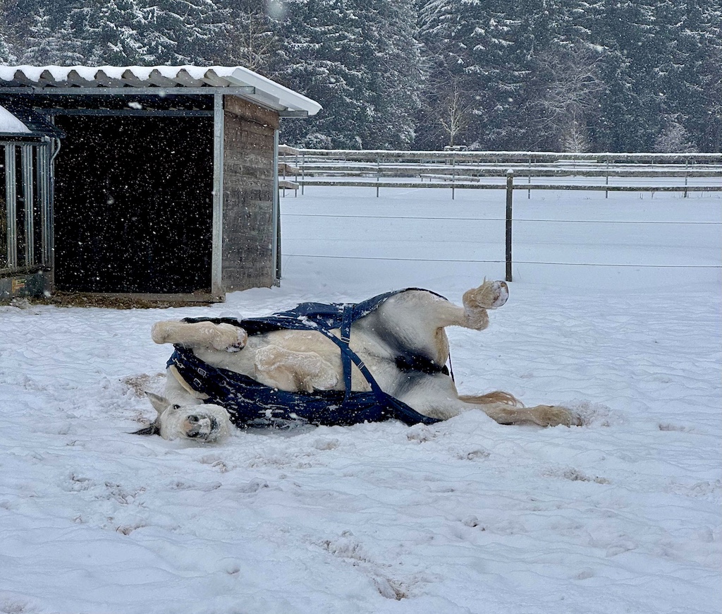 Pferde mögen Schnee sehr, da sie gut an Kälte angepasst sind und das Winterfell sie schützt. Schnee ist eine besondere Abwechslung im Jahresverlauf. Zudem halten die Pferdedecken unsere Therapiepferde besonders warm. Pferde spielen gerne freudig im Schnee, wälzen sich oder fressen sogar Eiszapfen, solange sie ausreichend vor Wind geschützt sind und frisches Wasser vorhanden ist. Pferderassen wie Flipp, unser Shetlandpony, sind besonders gut an Schnee gewöhnt, aber auch andere Pferde genießen die Bewegung im Schnee, solange sie gesund sind und die Bedingungen stimmen.