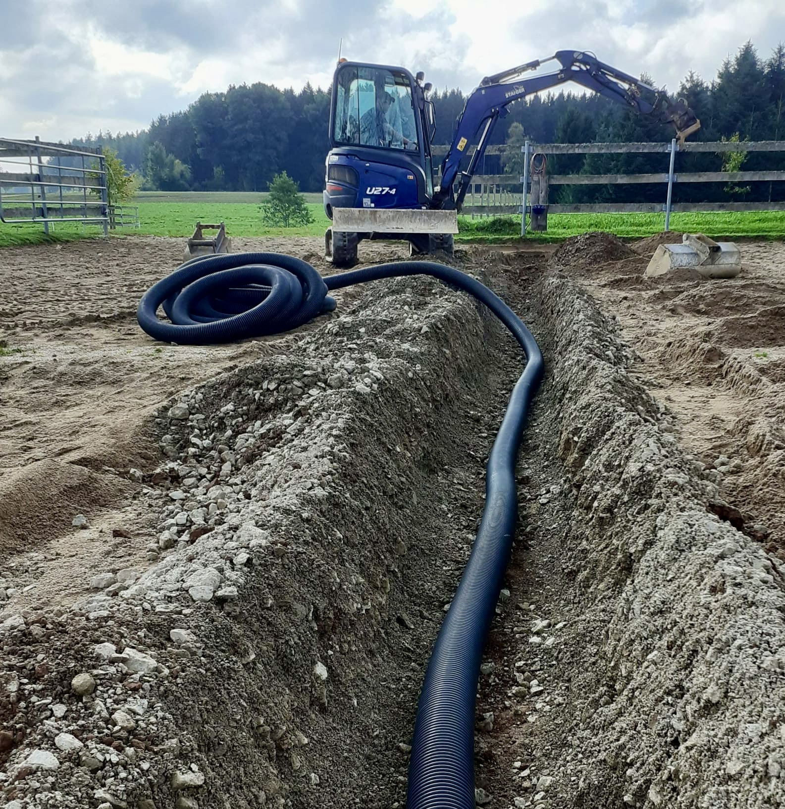 Was vom Frühjahr bis Herbst als einfach erschien, wurde in Winter zur Mammut-Aufgabe. Selbst unsere Haustechnik, gepaart mit Arnold Seng mussten ein machbares Zeitfenster abwarten, bevor sie mit schwerem Gerät und Isolierten Leitungen die Vorarbeiten erledigen konnten. Für die Facharbeit einer „beheizte Wasserleitung“ haben wir örtliche Handwerker gebeten, die unsere Wünsche auch in der kalten Jahreszeit umsetzen konnten. Rückbetrachtet war es ein mächtiger Eingriff in den Allwetterplatz. Dank unserer Haustechnik und Arnold konnte die gesamte Investition kostengünstig umgesetzt werden. Danke an Euren Einsatz.