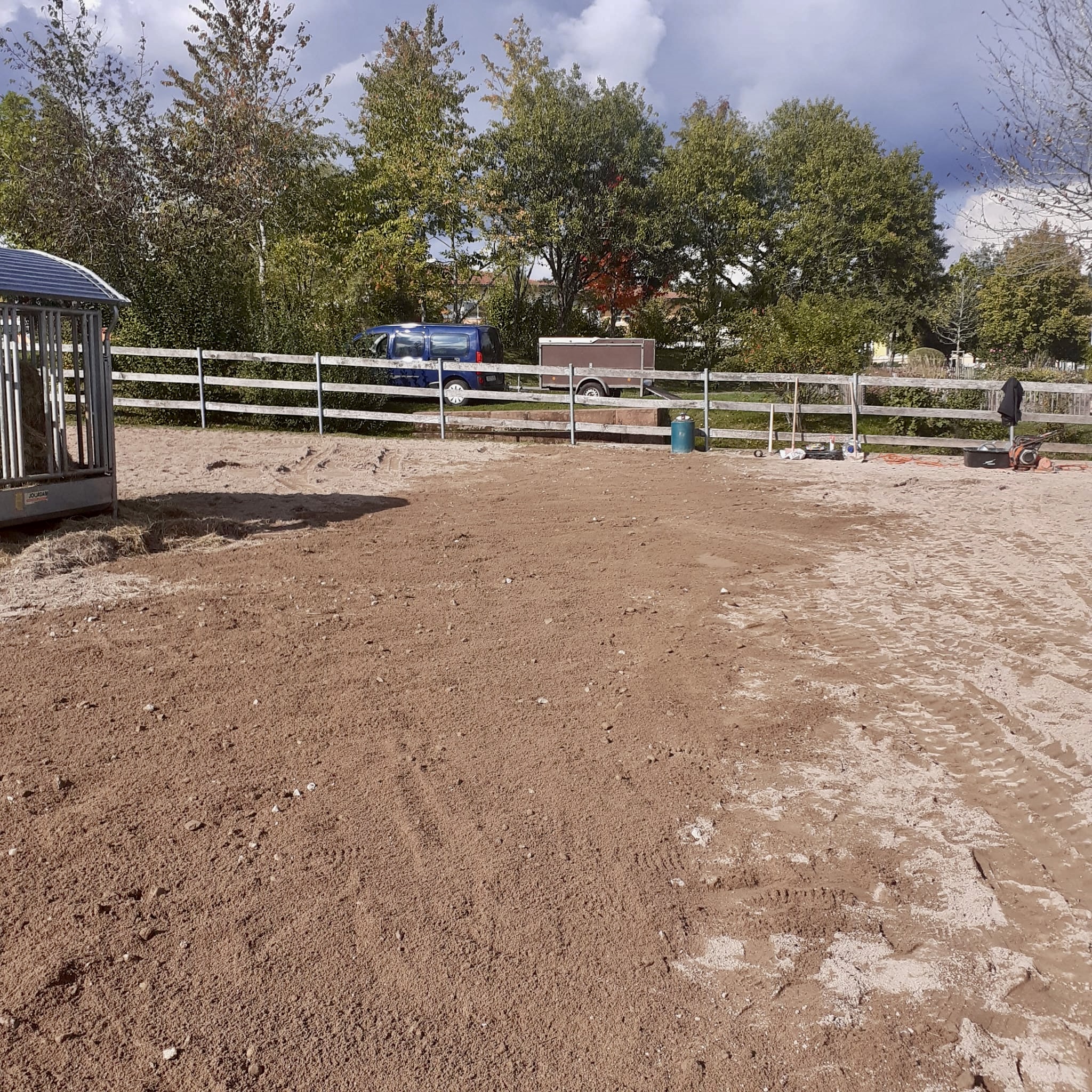 Auffälligkeiten mit zwei Therapiepferden auf dem Allwetterplatz, führen nun zur Teilung des Paddocks. So beruhigten sich die Unstimmigkeiten in der Herde und machte das Miteinander wieder harmonisch. Seit geraumer Zeit beobachteten Arnold Seng und seine Reittherapeutinnen zunehmende Reaktionen, die sich beim zusammentreffen zweier Alpha-Pferden, ergaben. Um größeren Folgen Vorschub zu leisten, teilte unser Team testweise den Allwetterplatz in zwei gleich große Zonen, was sehr gut und beruhigen auf die Herde wirkte. Allerdings brachte nun diese Änderung eine dringliche bauliche Veränderung hervor. Neben einem Futterplatz ist eine beheizte Tränke, speziell im Winter, von besonderer Bedeutung. Natürlich sagte der Förderverein diese Investition zu, damit es im Reitstall erfolgreich weitergeht.
