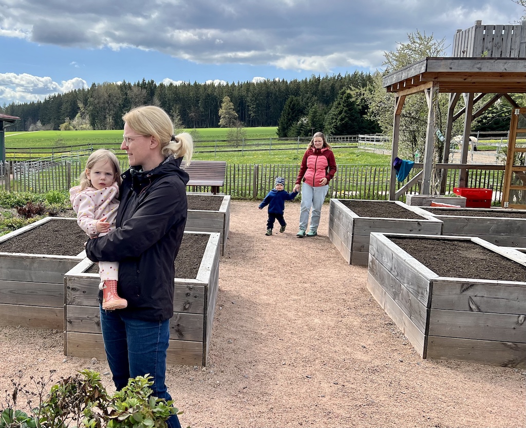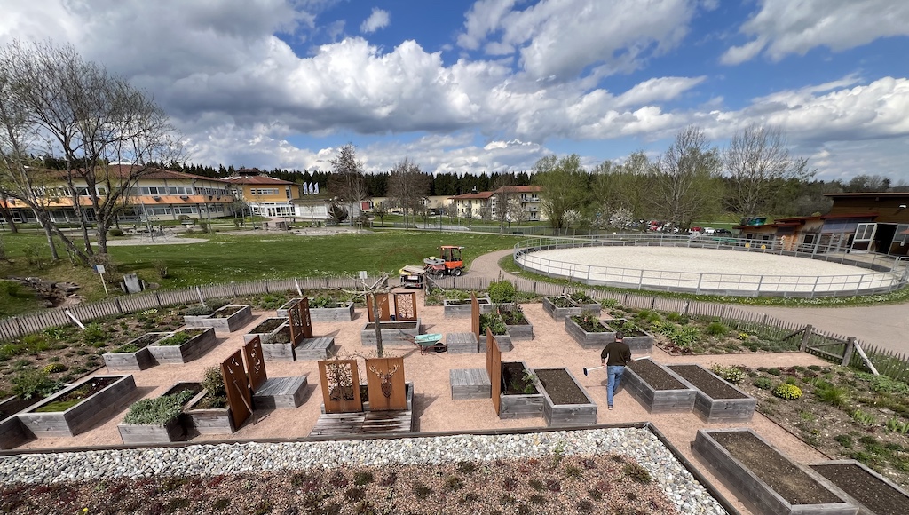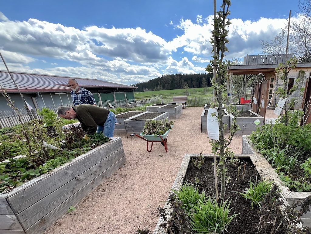 Auch im letzten Jahr legten wir eine Kaffeepause ein, weil es zu massiv regnete. Kein Beinbruch, denn unser Stiftungsteam um Steffi Rothmund hat uns noch immer bestens versorgt, dass eine Regenpause in der Gartenhütte zu den angenehmen Seiten eines Pflanztages zählt. Wir nehmen es so, wie es kommt. Der 20. April steht und hier tritt Volker Kugel im Bauerngarten an – komme was wolle. Wie in den letzten Jahren werden Gemüsesorten noch nicht eingesetzt. Sie können witterungsbedingt in Tannheim erst im Mai gepflanzt werden. Katharina Biedermann wird das mit Ihrem Mann Alex bei passender Gelegenheit im Mai nachholen.