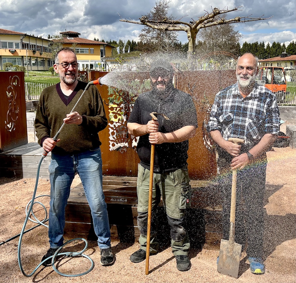 In vier Wochen drehen wir den Bauerngarten wieder auf links. Was uns alle aber überraschte, ist der erneute Verlust an Blumenerde in allen Hochbeeten. Selbst Insider sind ratlos – „Wir glauben, dass es doch ein Tier im Wald gibt, das gerne Blumenerde frisst!“ Im letzten Jahr haben wir 100 Sack Blumenerde in die Hochbeete eingebracht, das selbe Prozedere erwartet uns in diesem Jahr. Volker Kugel und Erwin Halter konnten es bei der Besichtigung kaum fassen, dass erneut so viel Blumenerde abgesackt sein soll. Oder haben wir ein großes Loch im Untergrund, das sich aus unseren Hochbeeten gerne bedient? Sei es drum, an dieser Arbeit kommen wir nicht vorbei. Mit vielen fleißigen Händen schaffen wir das.