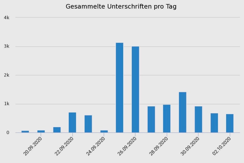 Seit dem 25.09.2020 explodieren die Unterschriften für unsere Petition und haben erstmals die Marke von 30.000 Unterschriften überschritten. Auf diese Solidarität hatten wir gehofft, aber in dieser kurzen Zeit nicht unbedingt erwartet. Alle Verantwortlichen Tannheims sind mehr als Stolz auf dieses Zwischenergebnis.