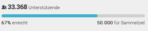 16.667 Unterschriften sind exakt noch die halbe Wegstrecke, die wir bereits gemeinsam gegangen sind. Oder anders formuliert: 2/3 des Weges liegen hinter uns und nur noch 1/3 vor uns. Jetzt kommt es auf durchhalten, weitersagen und auf weiterempfehlen an.