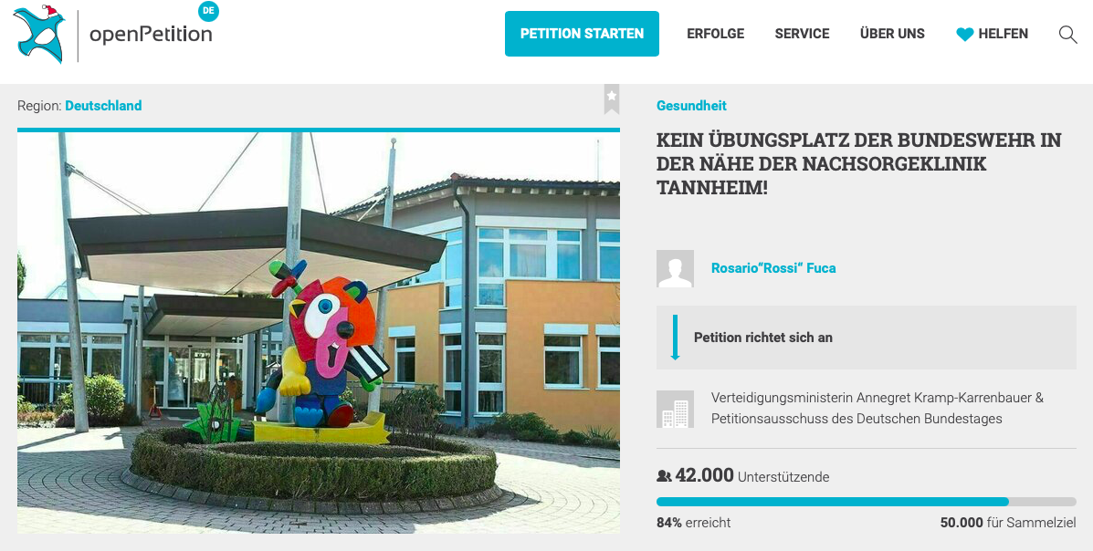 Fast wie ein Geschenk, dieser tolle Endspurt. Hatten wir am 19.12. noch 39.000 Unterstützer verkündet, so sind in den letzten Tagen weitere 3.000 Unterschriften eingegangen. Inzwischen sind es exakt 42.000 Menschen, die mit uns gegen den Standortübungsplatz der Bundeswehr votieren.