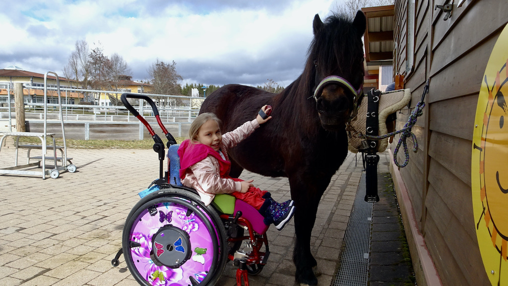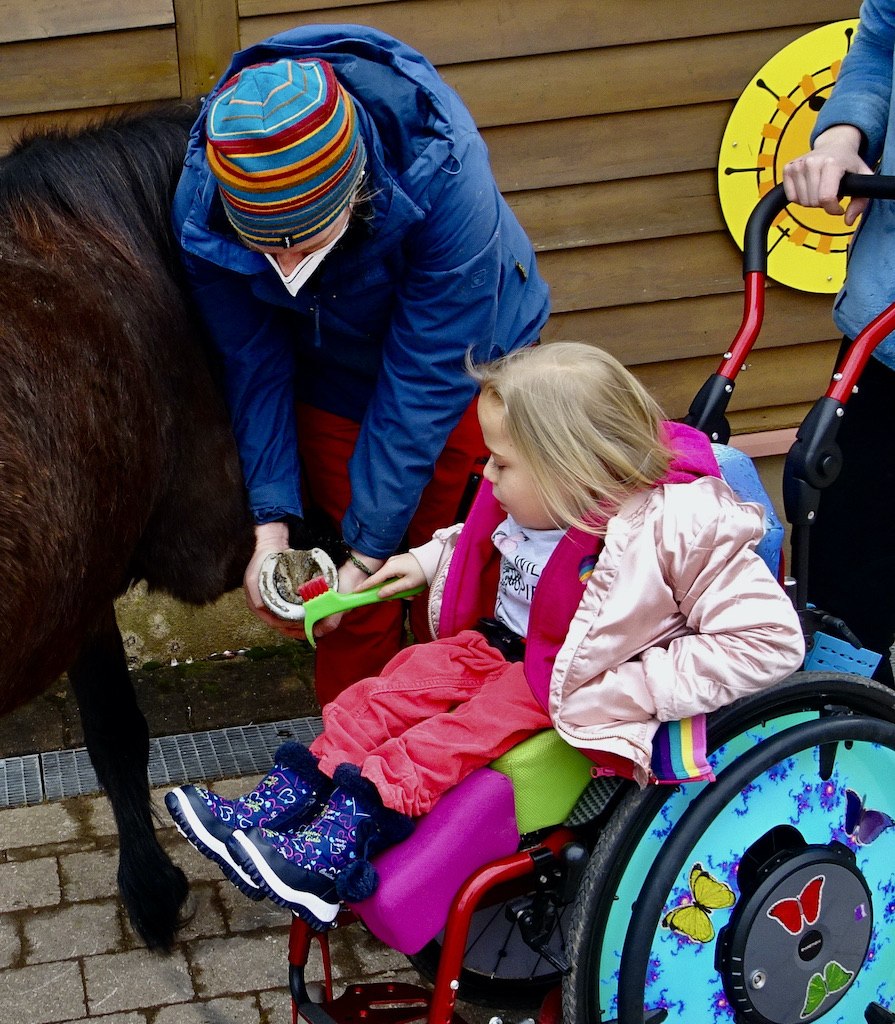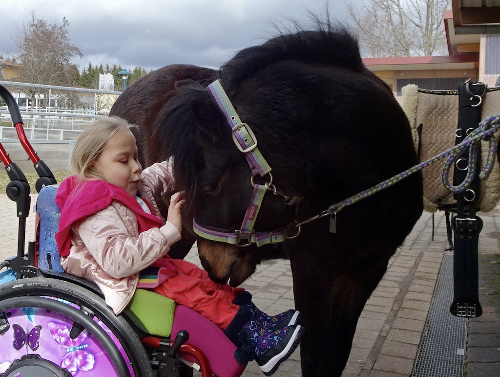Auch ein Rolli ist kein Grund, dass man nicht auch hier eine Therapie durchführen könnte. Wie man sieht, mit richtig viel Spass für beide Seiten.