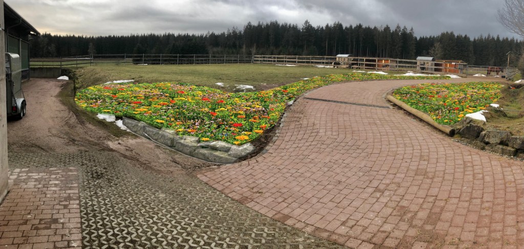 So in etwa stellen wir uns diese leuchtende Bienenwiese vor. Wir freuen uns schon sehr, wenn Volker Kugel, Direktor des Blühenden Barock in Ludwigsburg hier in Tannheim Hand anlegt. Unterstützung wird er von vielen helfenden Vätern der REHA April erhalten, damit Ende des Monats der Samen eingebracht werden kann.