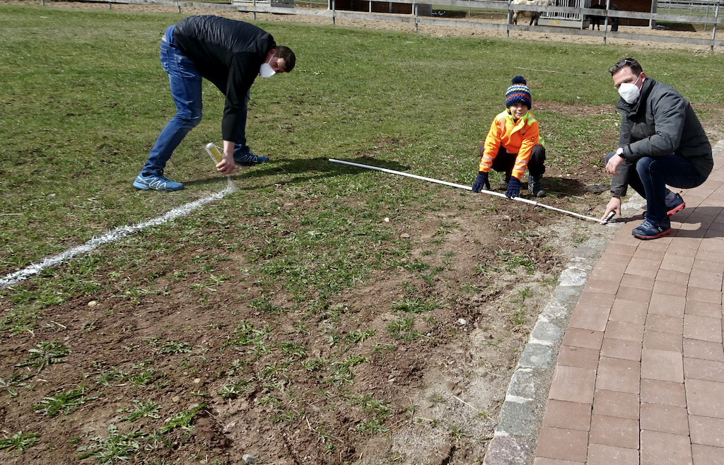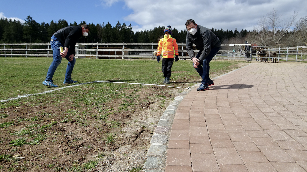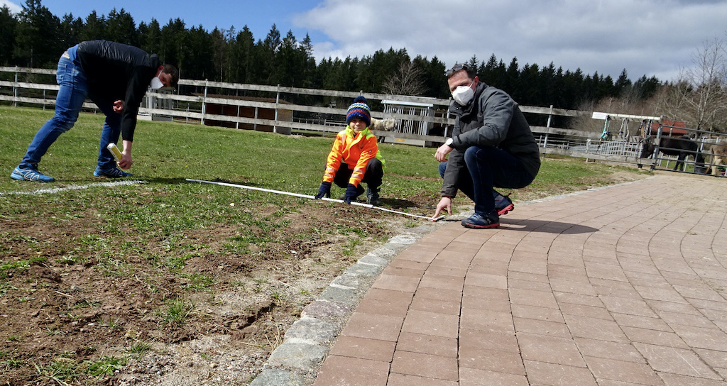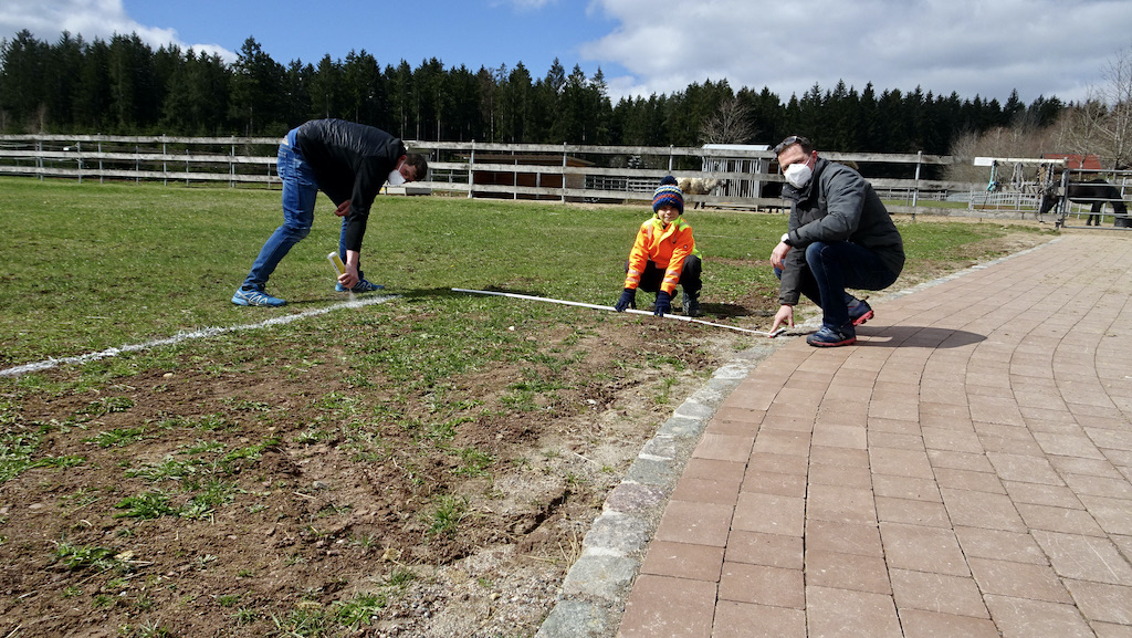 Das Gelände wird mit Hilfe von REHA-Eltern und Kindern aktuell ausgemessen und markiert, damit als nächstes die Bodenfräse zum Einsatz kommen kann. Soviel ist sicher, das wird eine riesige Bienenwiese. Volker Kugel wird alle Hände voll zu tun haben, dieses Mammutprojekt Ende April in die Tat umzusetzen.