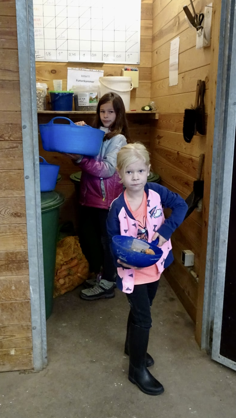 …die Stalltüren gehen auf und ein kleines Team fleißiger Helferlein kommt herein.