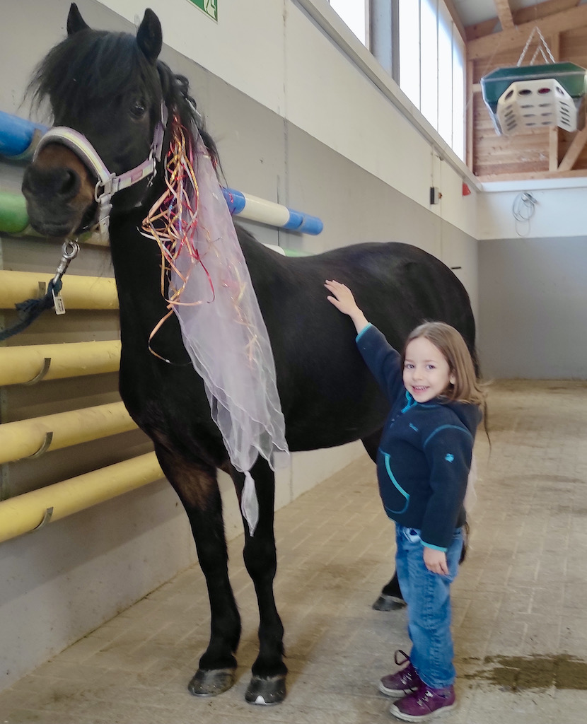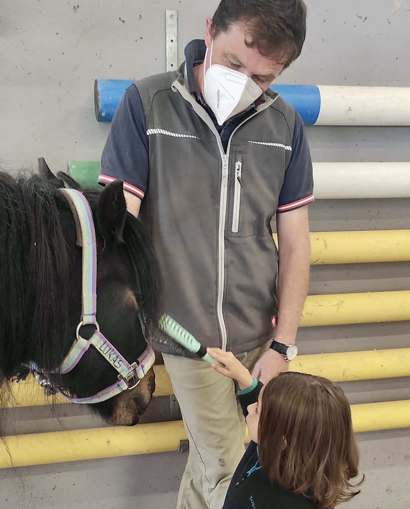 Der Größenunterschied ist nicht zu verkennen. Deshalb geniesen die Kleinsten in unserem Therapieteam eine Sonderstellung, um Ihnen den Umgang mit Pferden zu ermöglichen. Neben dem Stolz, es geschafft zu haben, sind solche Begegnungen als persönlichkeitsprägende Momente unbezahlbar. Gerade für die Kleinsten in unserer Gesellschaft. Das Strahlen im Gesicht sagt mehr als tausend Worte.