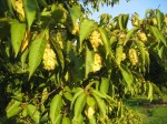 Zwei Kaiserlinden, zwei Hopfenbuchen, eine Platane, ein Eisenholzbaum und zwei Purpur Erlen werden künftig das Gelände der Nachsorgeklinik sowie die Koppel der Reitanlage beschatten und mit Ihrer Blattfärbung verschönern. Alle Gehölze sind winterhart und halten langen Trockenphasen stand. Was uns allerdings besonders wichtig erschien, waren die Verträglichkeiten von Blütenstände und Früchte dieser Baumarten. Sie müssen garantiert unschädlich für unsere Kinder sowie für unsere Therapiepferde sein. Das ist bei den von Volker Kugel ausgewählten Baumarten gewährleistet.