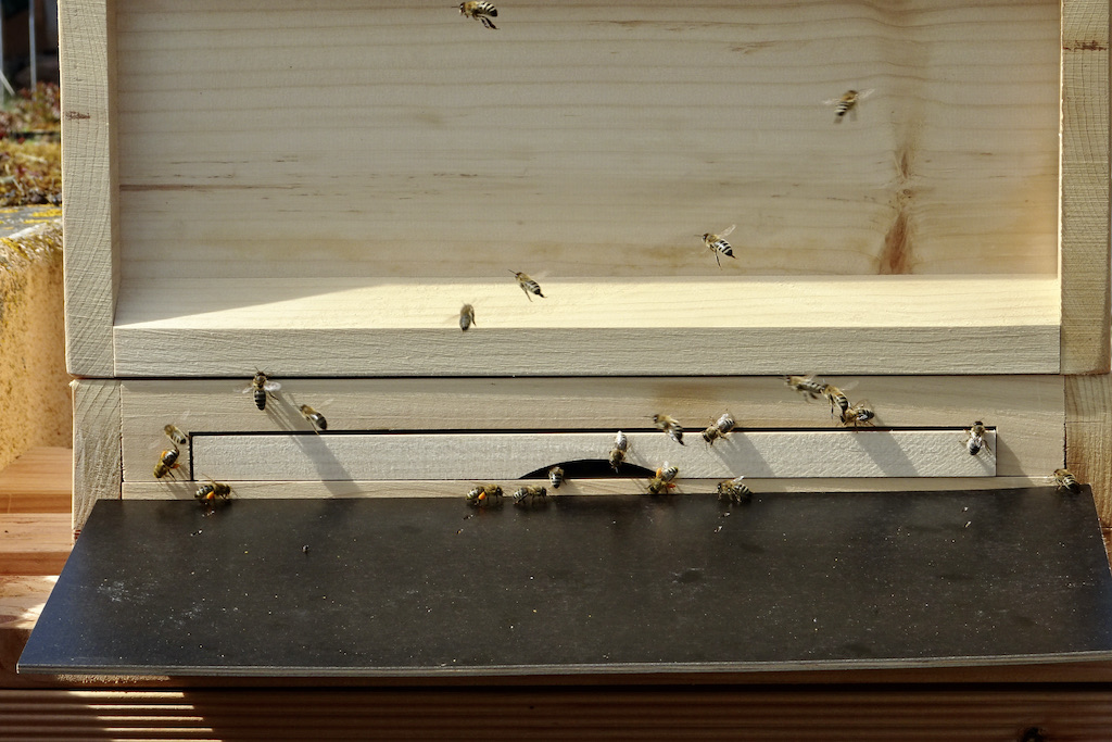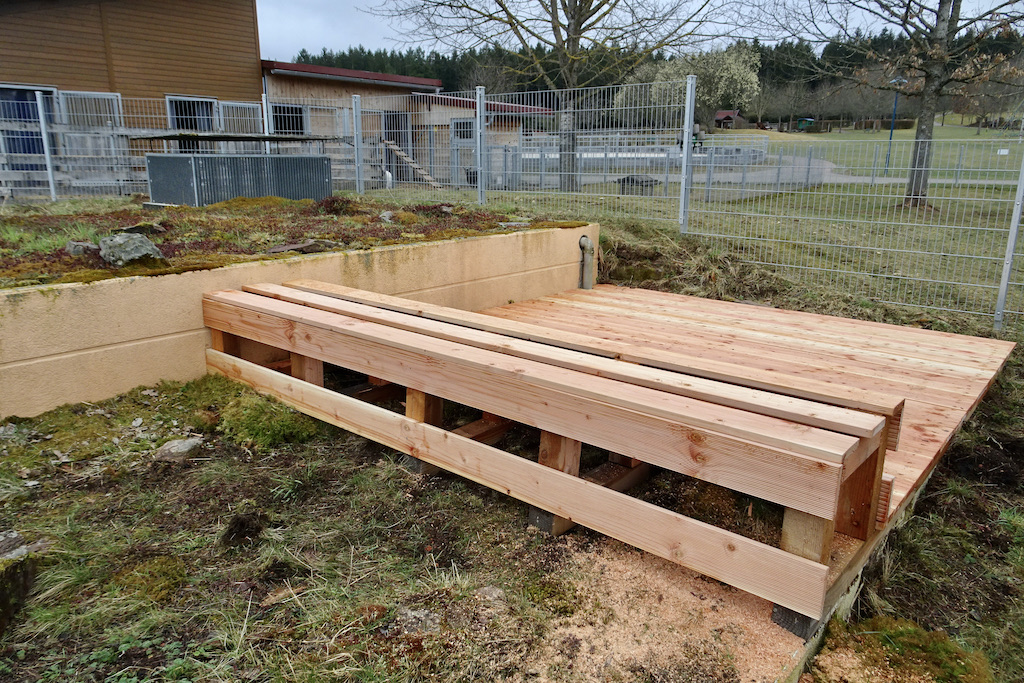 Bevor unsere Bienen einziehen konnten, hatte Arnold Seng etliche Vorarbeiten zu erledigen. Denn, wie den Streichelzoo, in Zukunft werden unsere Kinder auch die Bienen besuchen wollen. Daher baute er einen Vorplatz mit etwas Abstand, damit unser Imker Arnold die Besonderheiten unserer Bienenvölker ausführlich erklären kann. Und wie man sieht, ist auch noch Platz für weitere Bienenvölker. Zunächst sammeln wir mit den ersten Völkern Erfahrungen, um ggfls. in Zukunft weiter zu investieren. Wir sind sehr gespannt auf die Erfahrungen der nächsten Wochen.