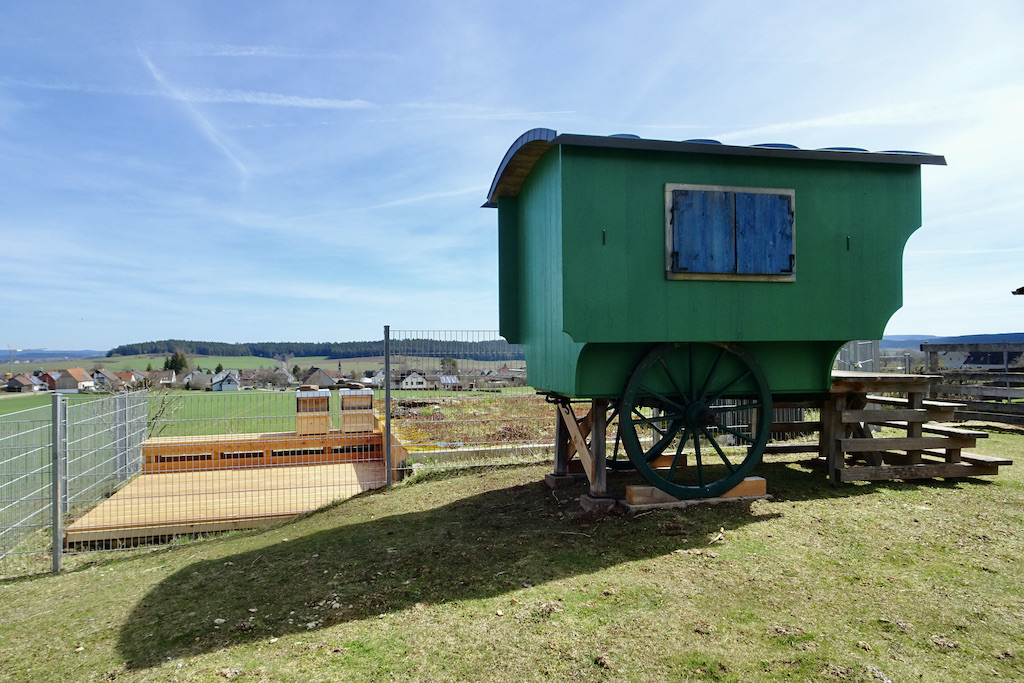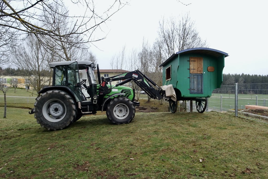 Besonders gelegen kam uns ein Schäferwagen, der bislang keine besondere Nutzung erfuhr. Das ändert sich und dekoriert den Bienenplatz in besonderer Weise. Der Schäferwagen wird in Zukunft alle Utensilien beherbergen, die für das Imkern notwendig sind. Von Schutzanzügen, Rauchkannen, weitere Beuten oder auch Honig-Rähmchen. Den Schäferwagen werden unsere REHA-Kinder mit Ihren Eltern in den nächsten Tagen verschönern. Neben einem neuen Anstrich werden gerade viele „Holzbienen“ ausgesägt und bemalt, die natürlich einen Ehrenplatz an Schäferwagen erhalten werden. Der Kreativität unserer Kinder sind keine Grenzen gesetzt. Wir sind sehr gespannt auf die Bastelarbeiten. Wir werden hierüber berichten.