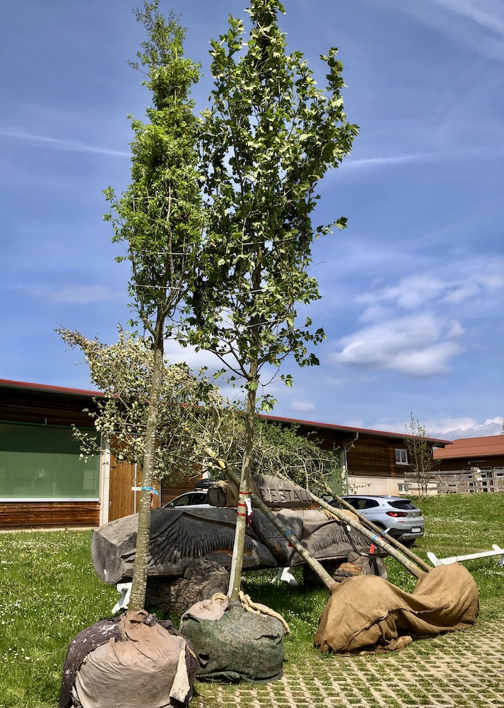 Natürlich fieberten wir auf diesen Tag hin! Heute war es dann soweit. Neun Klimabäume trafen auf dem Gelände der Nachsorgeklinik ein. Große, kräftige Bäume, die bereits in diesem Jahr ersten Schatten spenden werden. Sicher mit zunehmender Schattenwirkung in den nächsten Jahren.