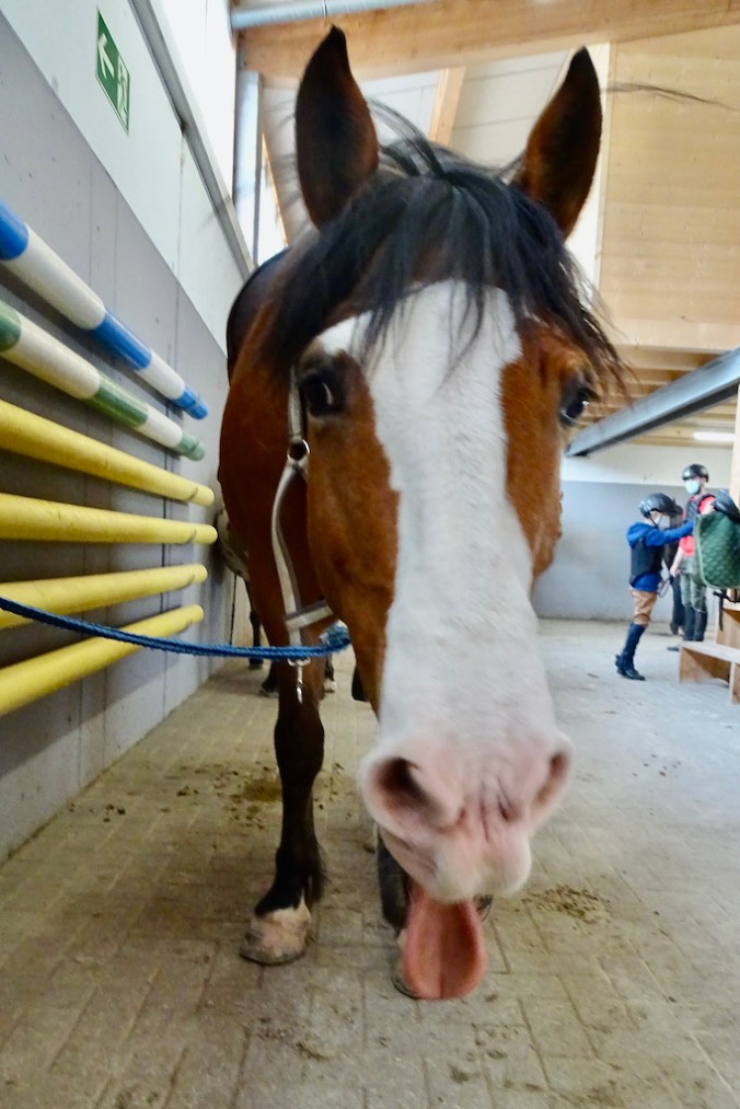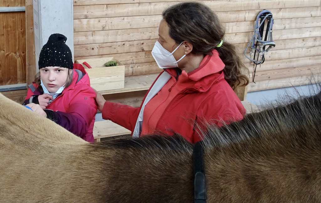 Auch einige Ritte mit unserem Leon bereicherten ihre Tage hier in Tannheim. Das wechselnde Februar-Wetter bildete einen schönen Kontrast zu unserem wunderschönen Rappen Leon.