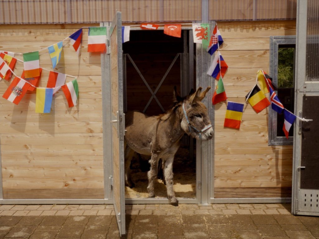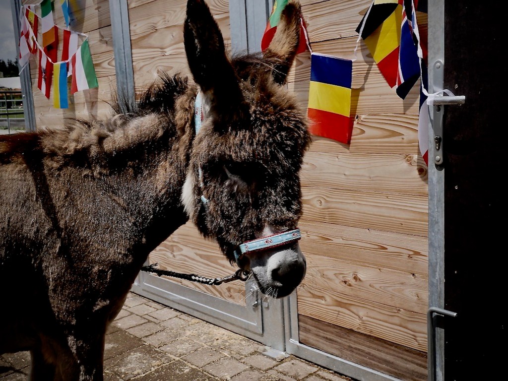 Mittlerweile hat sich der Kerl hier ganz gut eingelebt. Allerdings merkten auch die Mitarbeiter des Therapiestalls schnell, dass er von seiner sportlichen Vergangenheit gezeichnet ist. Seine Muskulatur ist steif, er hat überall Blockaden und auch sein Blick war zu Beginn traurig und leer. Mit viel Liebe und Geduld versuchen wir Cherbourg nun in den Therapiealltag zu integrieren, ihn zu lockern, zu trainieren und ihm ein schönes Leben zu ermöglichen. Er geht jeden Tag mit den anderen Pferden auf die Weide, wo er einfach nur Pferd sein darf. Er hat sich gut in die Herde integriert, am liebsten leistet er aber unseren beiden Eseln Moritz und Clara Gesellschaft